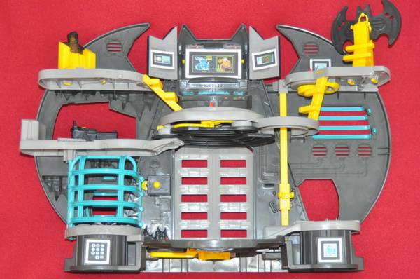 Kids will love helping Batman with crime-fighting plans from this secret command center equipped with all sorts of gadgetry! There’s a Batcomputer, secret walkways, a Batwing, an elevator, jail and more! Turn the figures on any of the 3 activation disks to make cool things happen throughout the Batcave! Plus, there’s a launcher that lets young super heroes fire projectiles at approaching intruders! And when Batman needs to race into Gotham City just place him on his Batcycle and send him off to save the day!