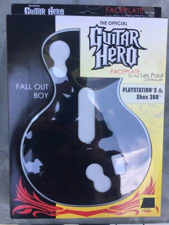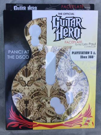 Guitar Hero Faceplates (2) for Les Paul controller, Panic! At The Disco, Fall Out Boy. Added bonus - Guitar Hero Aerosmith Tour Book and decals. New in packages. For Playstation 3 and Xbox 360.