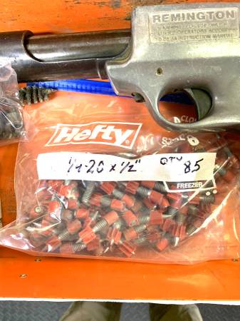 Powder Actuated Tool Remington 482 + Box, Accessories, Pins, Loads, etc... Remington 482 Powder Actuated Tool 40 ¼"-20 ⅜" studs 85 ¼"-20 ½" studs 60 ¼"-20 1" studs 26 Hanger Clips 106 #2 Loads 40 #3...