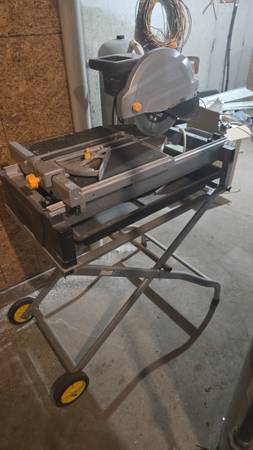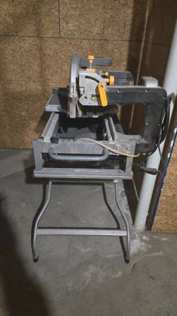 Chicago electric 10" tile/brick saw works like brand new comes & the blade water pimps still working was cleaned after every use. Comes with aluminum stand, 2 Diamond Tiles blades & a mason...
