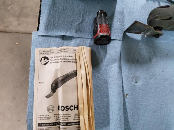 Bosch 12v lithium-ion cordless variable speed multi-tool. With accessories, 2-12v batteries, charger & plastic case. Cash or card. Pickup only. No checks. Will not respond to code request. Or...