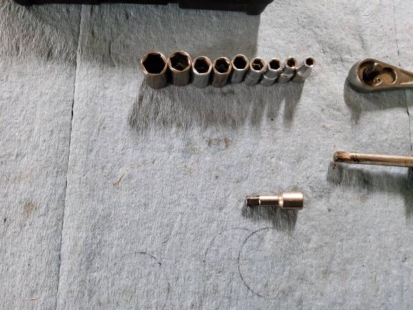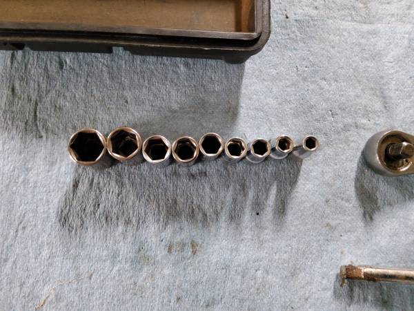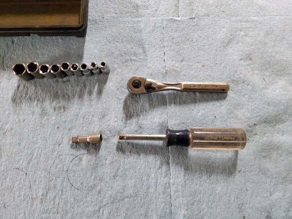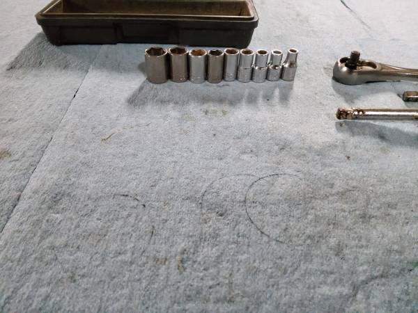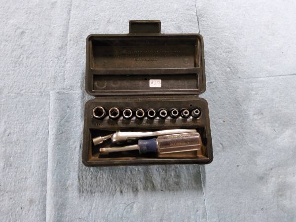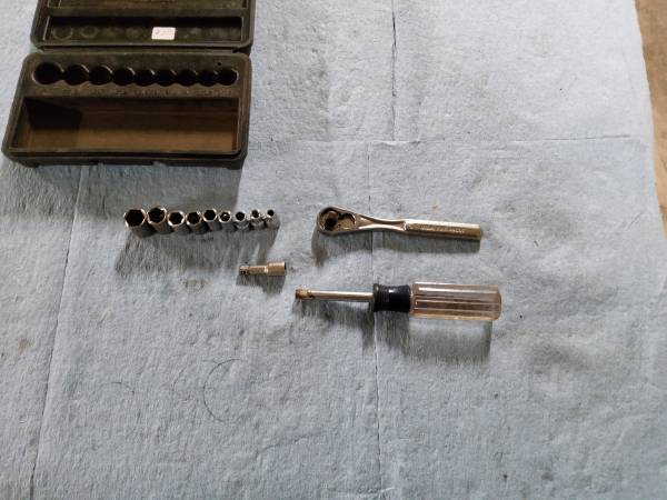 Craftsman 12pc 1/4" drive ratchet & socket set. Shallow, 6pt, 3/16"-1/2",ratchet, 1" extension, socket driver & plastic case. Cash or card. Pickup only. No checks. Will not respond to code...