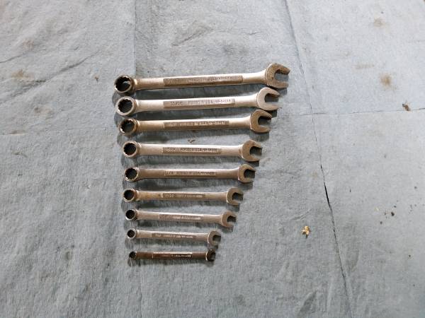 Craftsman 9pc box/open end wrench set. 12pt, 1/4"-3/4". Made in USA. Cash or card. Pickup only. No checks. Will not respond to code request. Or personal email request.