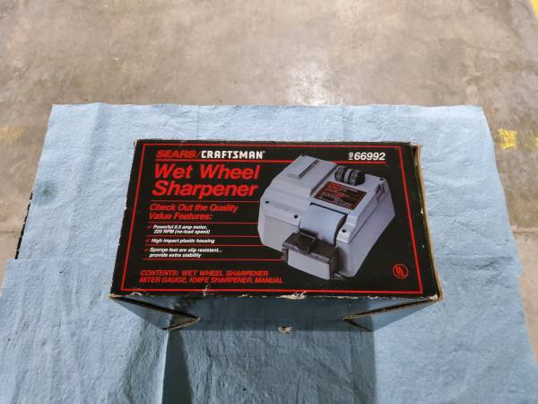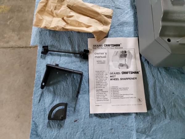 Craftsman NOS wet wheel sharpener. Cash or card. Pickup only. No checks. Will not respond to code request.