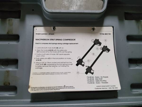 Evercraft Macpherson strut spring compressor set. Cash or card. Pickup only. No checks. Will not respond to code request. Or personal email request.