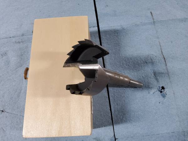 2 3/4" forstner drill bit. 1/2" shank. 6" long. 7000 rpm max. With wood box. Cash or card. Pickup only. No checks. Will not respond to code request. Or personal email request.