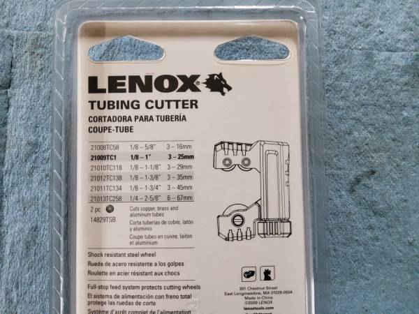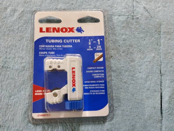 Lenox 1/8"-1" tubing cutter. Cash or card. Pickup only. No checks. Will not respond to code request. Or personal email request.