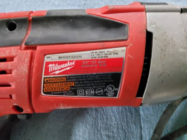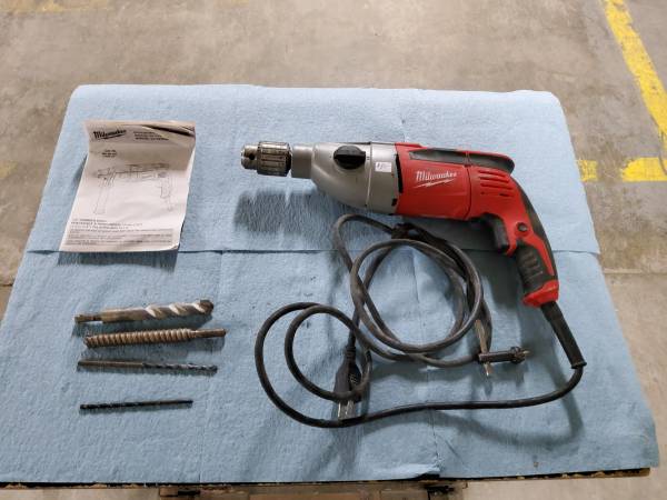 Milwaukee 1/2" corded hammer drill. With drill bits & plastic case. Cash or card. Pickup only. No checks. Will not respond to code request. Or personal email request.