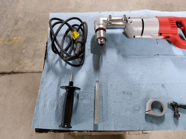 Milwaukee heavy-duty 12" corded right angle drill. With plastic case. Cash or card. Pickup only. No checks. Will not respond to code request. Or personal email request.