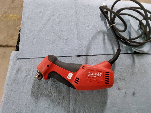 Milwaukee heavy-duty 3/8" corded close quarters reversible drill. Cash or card. Pickup only. No checks Will not respond to code request. Or personal email request.