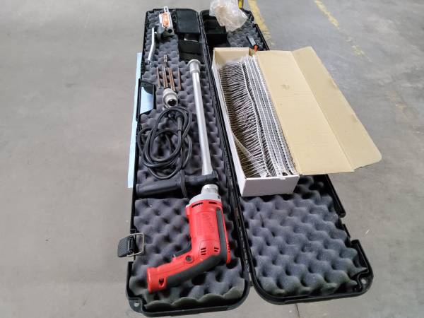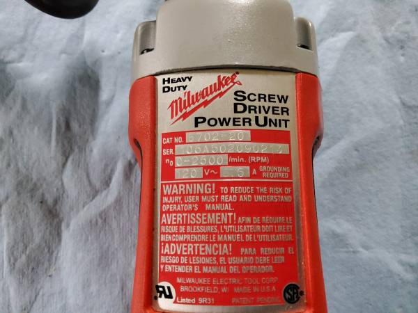 Milwaukee heavy-duty screw driver power unit. With Pam fastener attachment. Comes with box of #8×2 1/2" screws, bits & plastic case. Cash or card. Pickup only. No checks. Will not respond to...