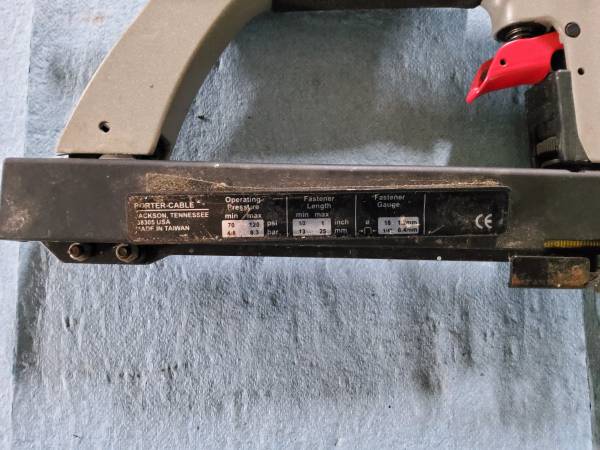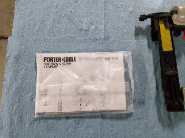 Porter Cable pneumatic 1/4" narrow crown stapler. Cash or card. Pickup only. No checks. Will not respond to code request. Or personal email request.