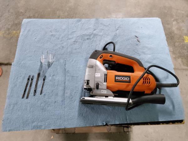 Ridgid corded variable speed jigsaw. With blades & bag. Cash or card. Pickup only. No checks. Will not respond to code request. Or personal email request.