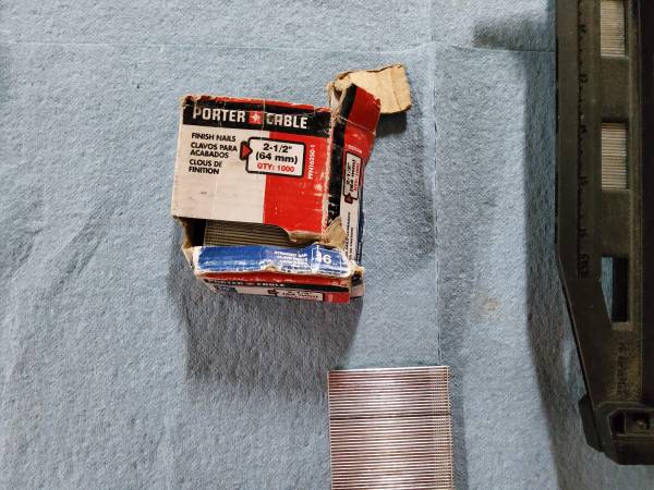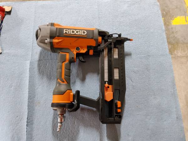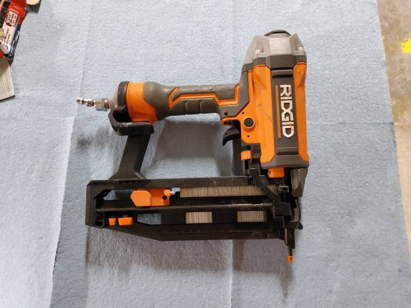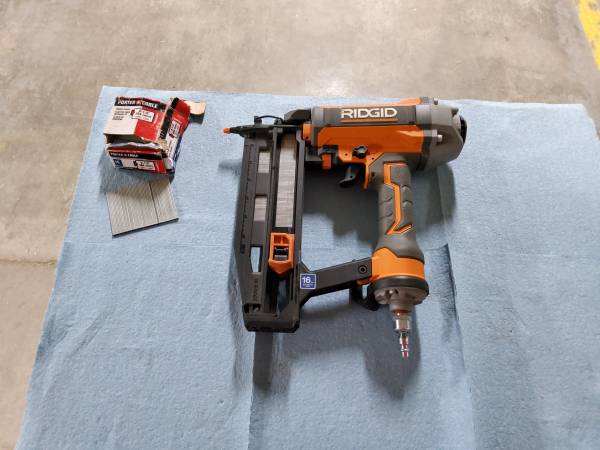 Ridgid pneumatic 16ga oil-free straight finish nailer. With 400-2 1/2" long finish nails. Cash or card. Pickup only. No checks. Will not respond to code request. Or personal email request.