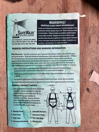SafeWaze fall protection System, complete as shown in photos. Retails around $500 Includes the bag that is not pictured. New, never used, but stored in my attic.
