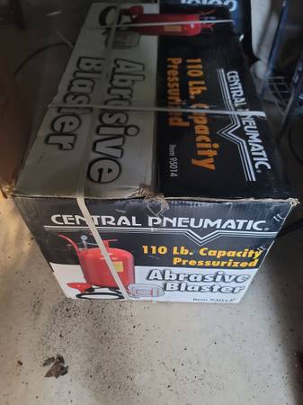Central Pneumatic 110lb capacity pressurized abrasive blaster. Bought it new a while back. I never used it or opened it. Sold as is. 75.00 OBO