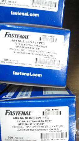 5,500 pcs.–1/8” Button / Dome Head Rivet x 5/16”- 3/8”Grip.....Fastenal #41015....500/bx. .................Length .525...Aluminum stem / Aluminum Head ..Original Box...