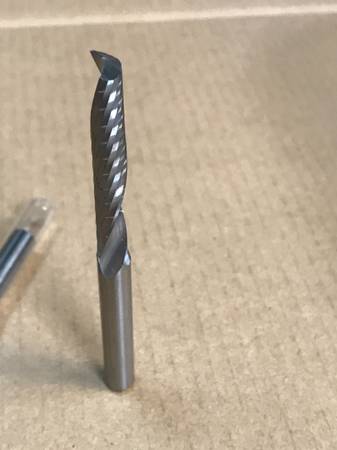 ..Solid Carbide / .suggested rpm = 16,000 – 20,000...Single O Flute- / 1/8” CD x ½” CL x 2.0” OAL – for alum. Or plastic , foam board...no cat. Sheet on Whiteside site since bit is a special...