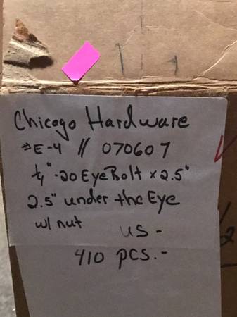 1140 pcs. – Hindley # 10803 Eye Bolt original box 1/4-20 x 3” under the ......................eye......w/nut......................................................$3.00 / 20