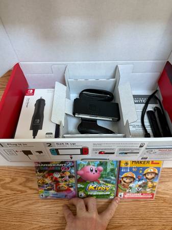 Three cartridge games: Mario Maker and Mario Kart 8 and Mario & Rabbids: Kingdom Battle