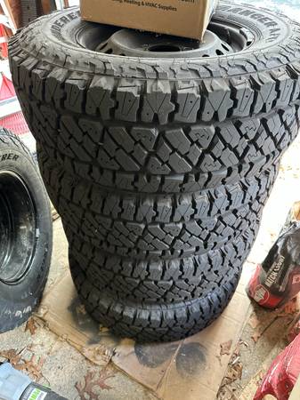 I have (5) nearly new LT285/70 R17 Thunderer Ranger A/T wheels and tires. The tires are mounted and balance on (5) Black Diamond Ford Bronco Steel rims. (4) have TPMS, the fifth one is the spare, and does not have TPMS. These spare has zero miles. The (4) mounted tires have about 350-400. These will bolt right on to the newer bronco’s.