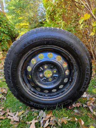 Four snow tires mounted on rims, used on Honda Fit but compatible with other years/makes/models that use the 4-100 bolt pattern. Easily switch wheels in the fall/spring. In terms of the Honda Fit, the size 185 70r14 tires and 14" rims fit perfectly but are lighter and allow for better snow tires (narrower tires with thicker sidewalls for absorbing pothole shocks).