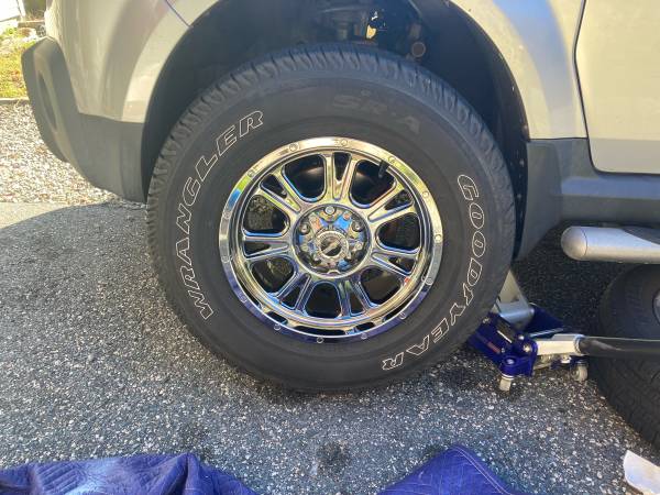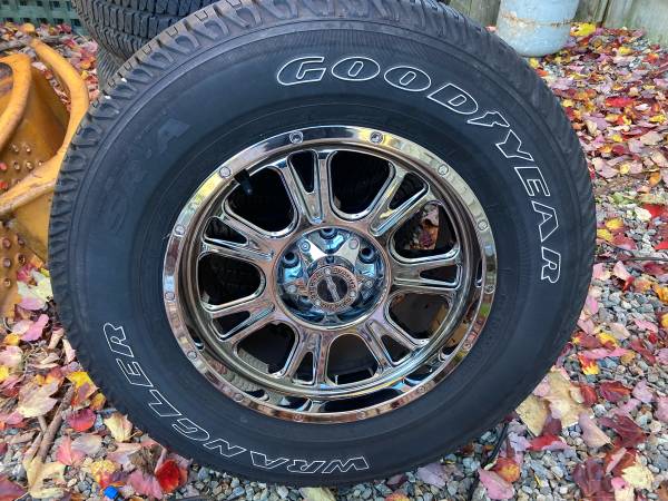 17x8.5 vision 399 chrome wheels with 255/75/17 wrangler tires - $800 (West Warwick)