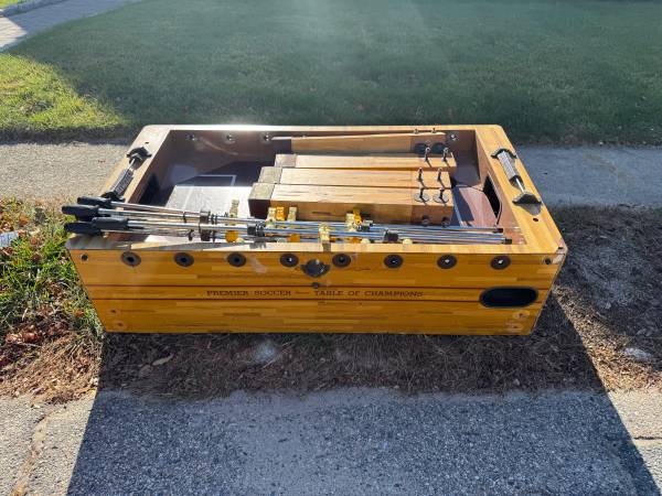 Free foosball table. All pieces included, even a bunch of the little balls. Disassembled for ease of transport!
