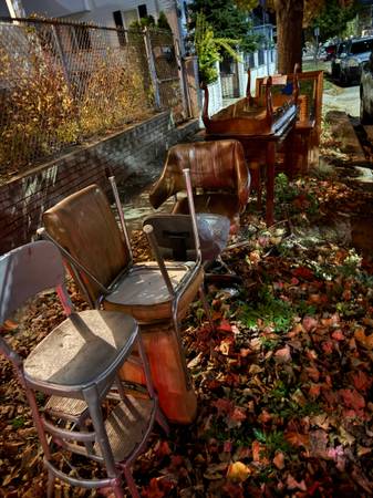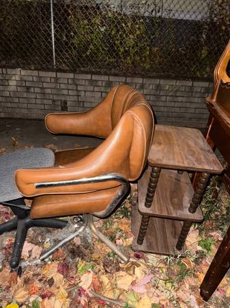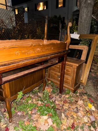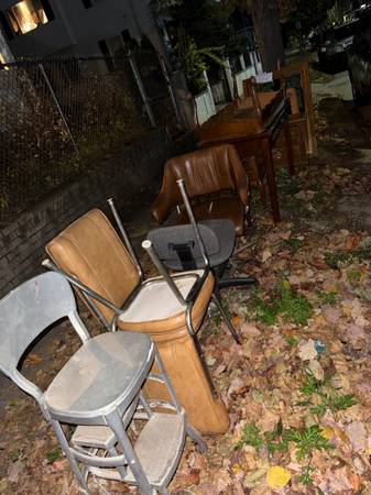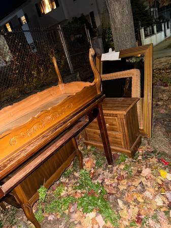 Free tables, night stand, chairs and mirrors located on the curb in front of 259 California Ave in Providence.