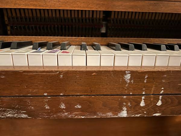 FREE small piano used in a children’s school. All keys and pedals work and the sound is quite good. Wooden frame has some issues but doesn’t affect playability.