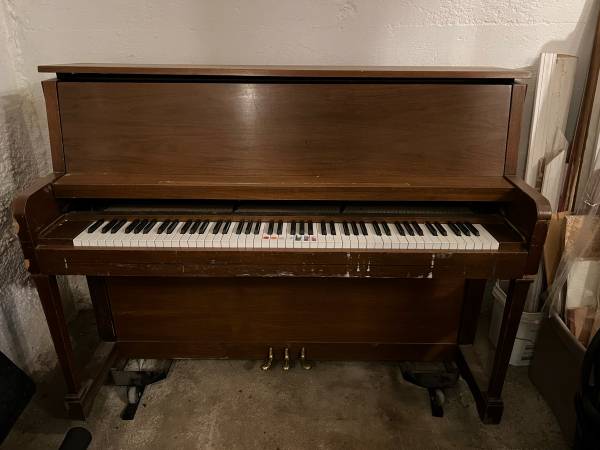 Piano is on a custom piano dolly/casters for easy pickup at garage level. Please keep this piano alive by adopting it!
